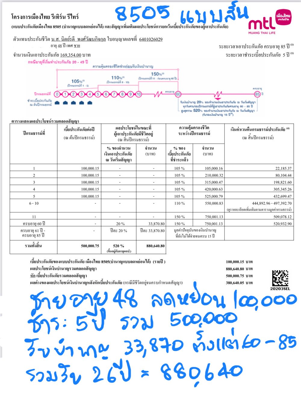1. แบบสั้น เมืองไทย รีเทิร์น รีไทร์ 8505 (จ่าย 5 ปี)