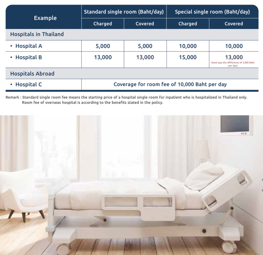 Cover actual standard single room fee even if it is higher in the future. Example of Room Fee for Plan 20 Million Baht