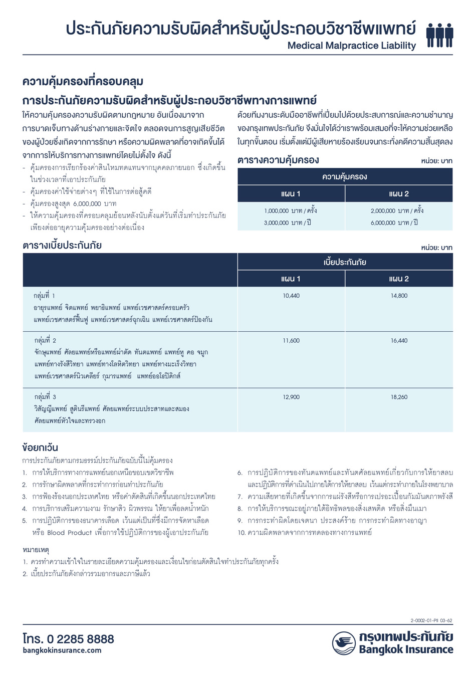 - ให้ความคุ้มครองที่ครอบคลุมย้อนหลังนับตั้งแต่วันที่เริ่มทำประกันภัยเพียงต่ออายุความคุ้มครองอย่างต่อเนื่อง