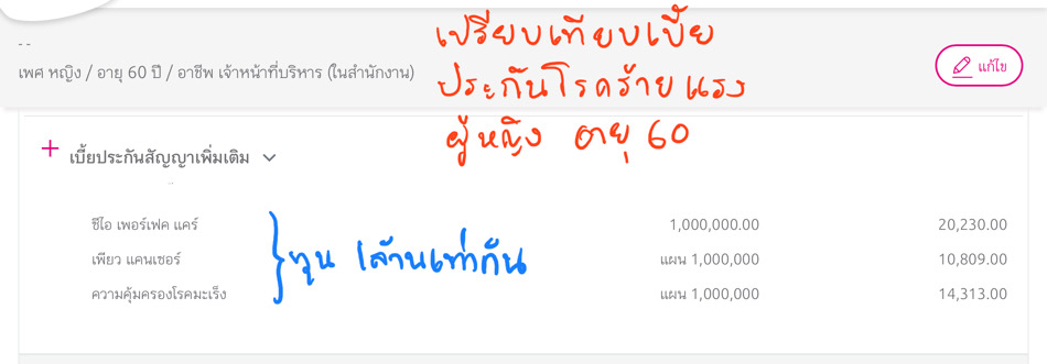 เปรียบเทียบเบี้ยประกัน สำหรับหญิงอายุ 20, หญิงอายุ 40 และหญิงอายุ 60