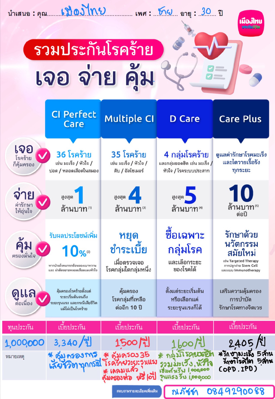 รายละเอียดความคุ้มครอง Care plus คลิก https://www.wangpaan.com/content/13546/cancer